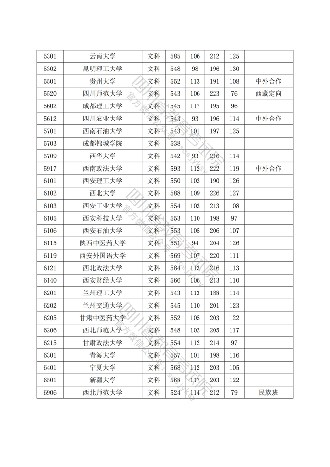 四川省2017-2020年高考本科普通批次投档分数线(文科)如下: