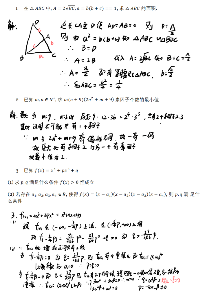 2022年中国科学技术大学强基计划测试数学试题详细解析如下: