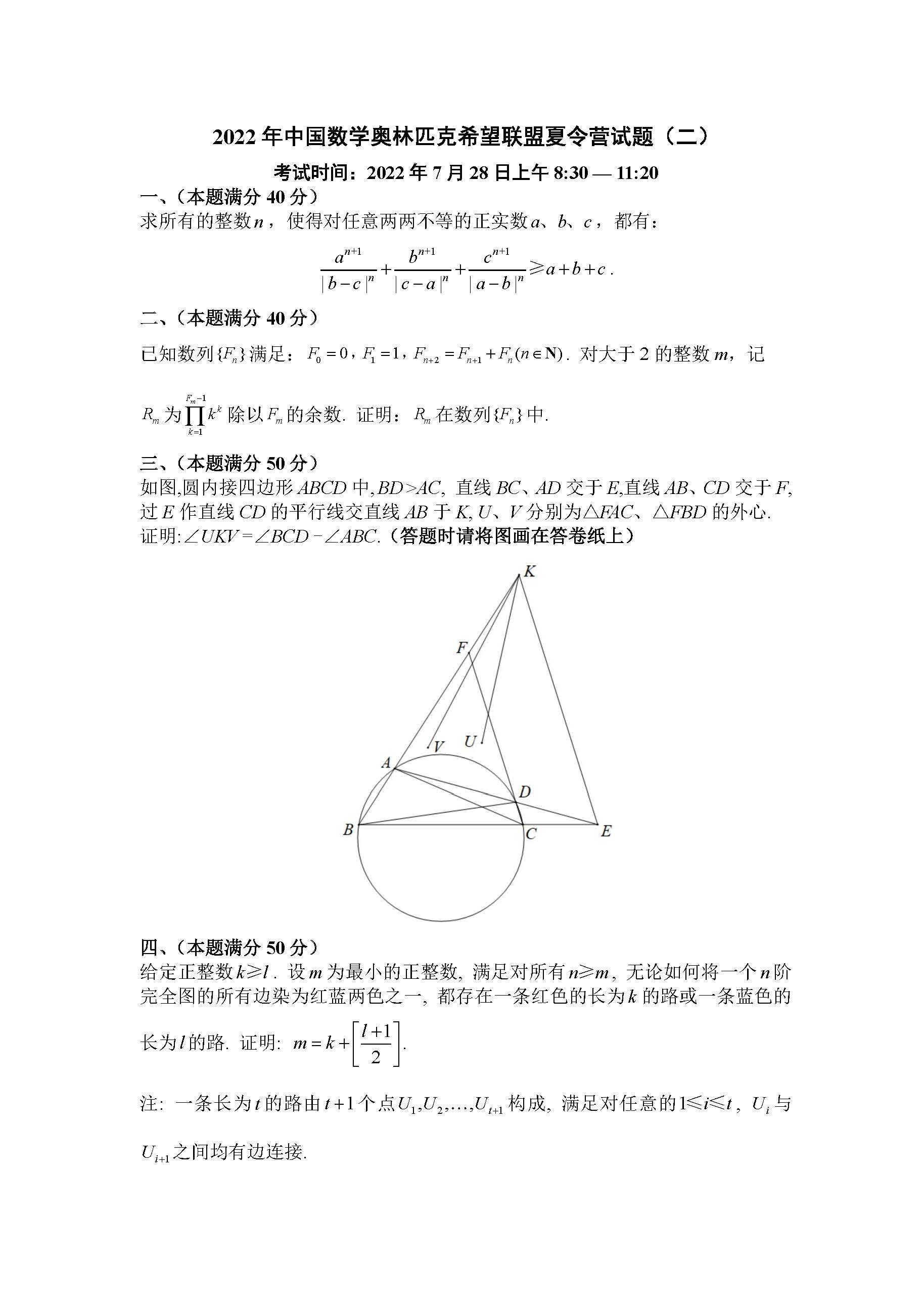 2022年中国数学奥林匹克希望联盟夏令营于7月底正式举行,在此,自主选拔在线团队同步更新2022中国数学奥林匹克希望联盟夏令营试题(第二天),供大家了解。