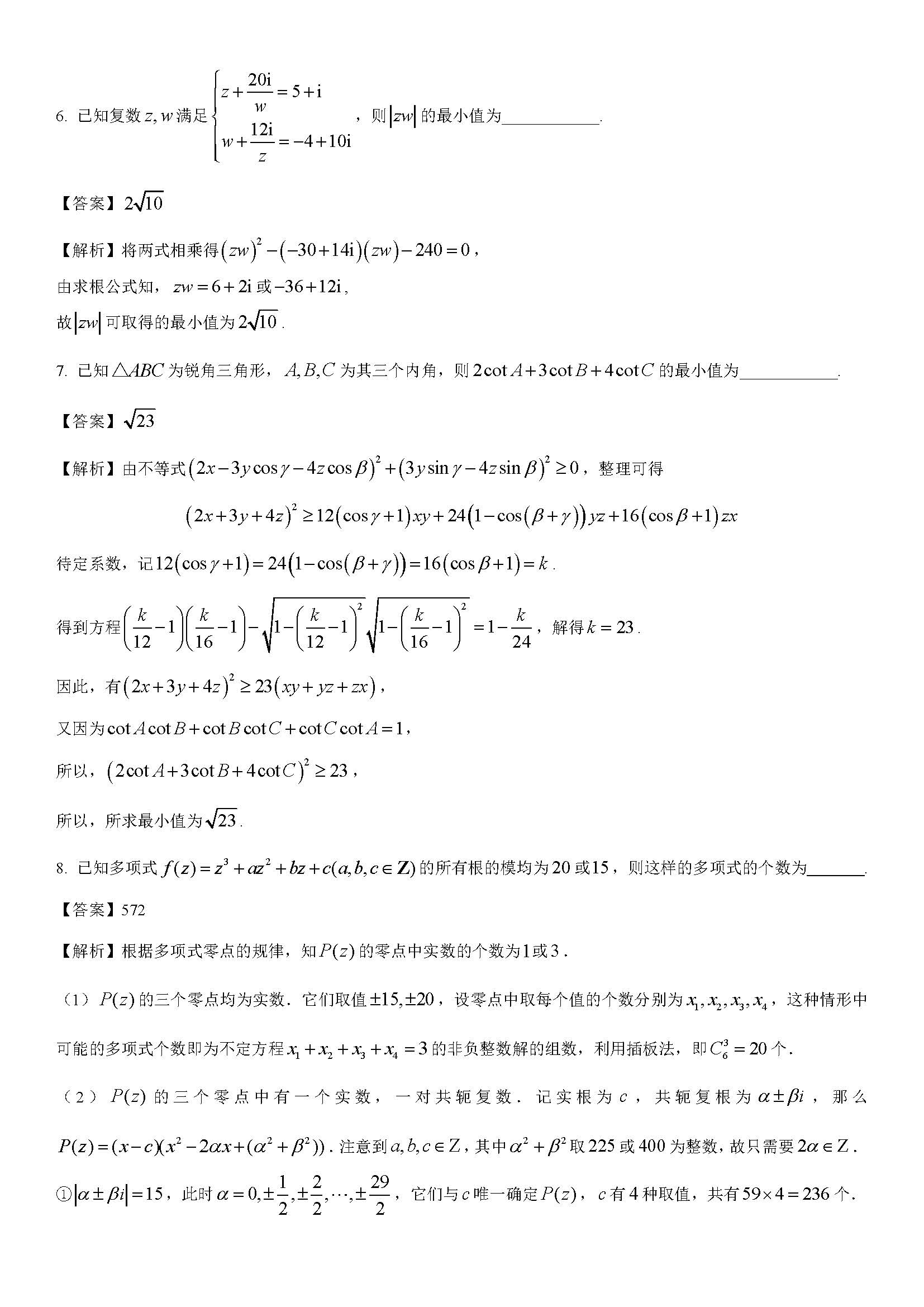 2022中国数学奥林匹克希望联盟夏令营试题答案(第一天)