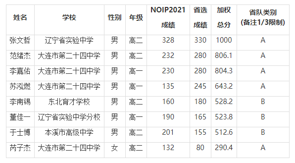 现对NOI2022辽宁省队入选名单进行公示如下 :