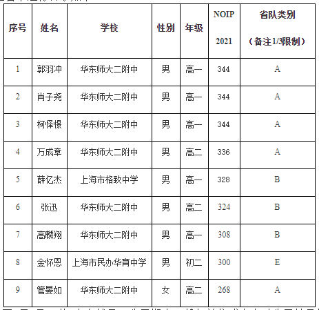 现对NOI2022上海队入选名单进行公示如下: