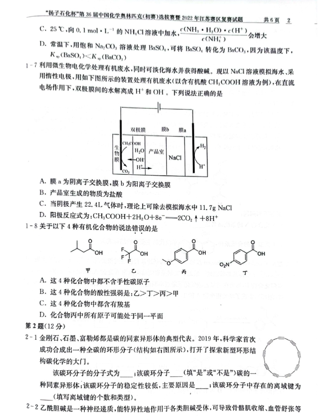 2022年第36届中国化学奥林匹克(初赛)试题2022-09-04
