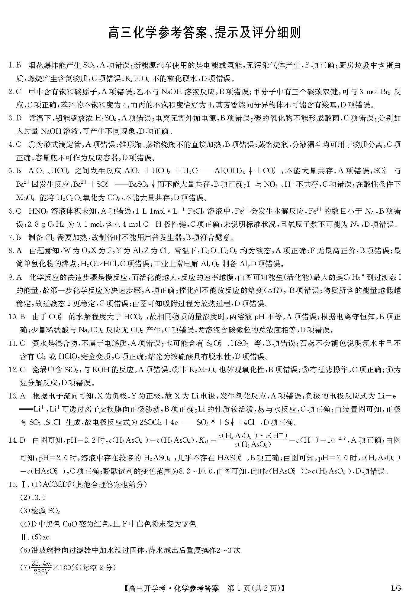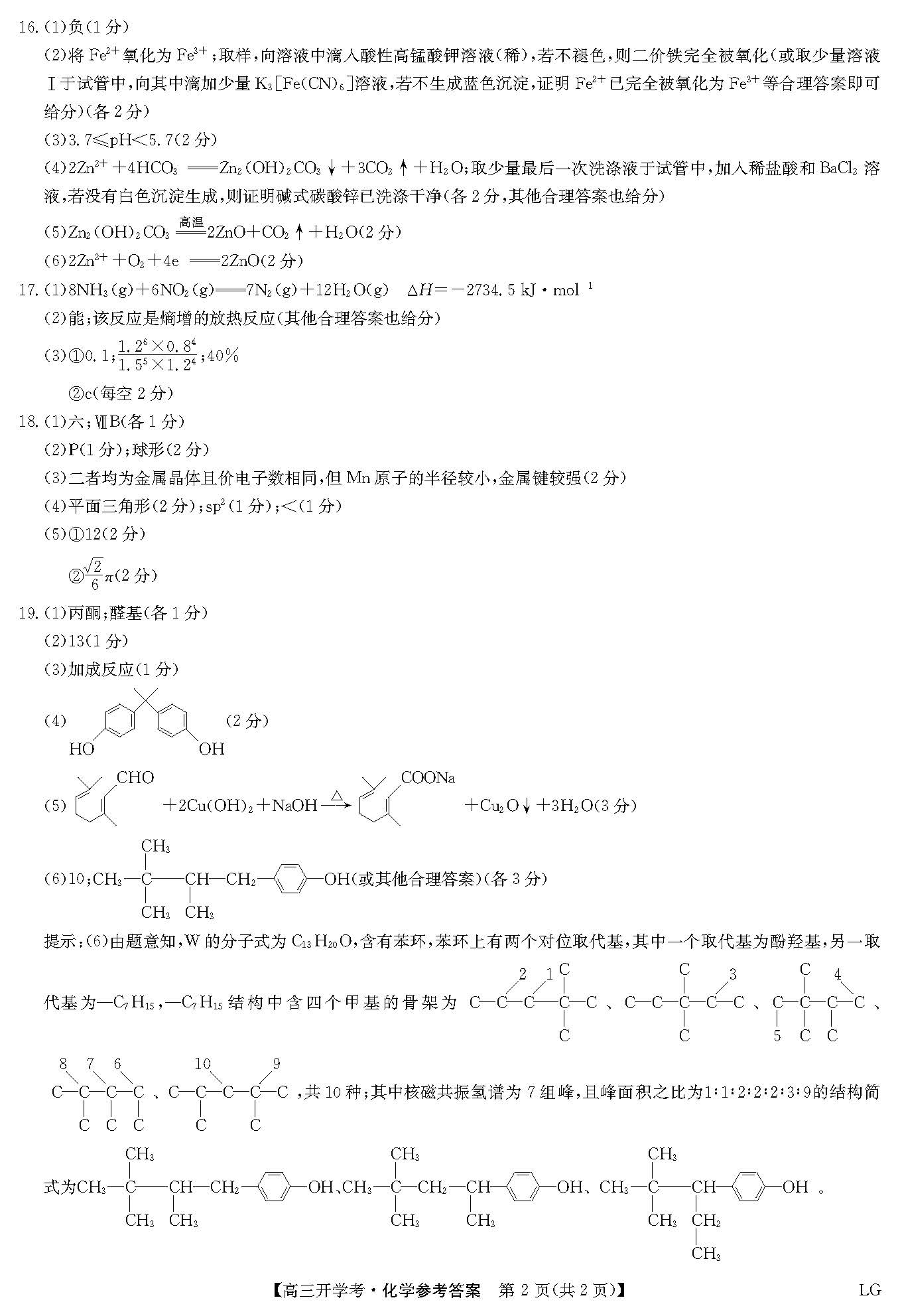 立即下载:九师联盟2023届高三9月开学考化学试题答案(全国卷)