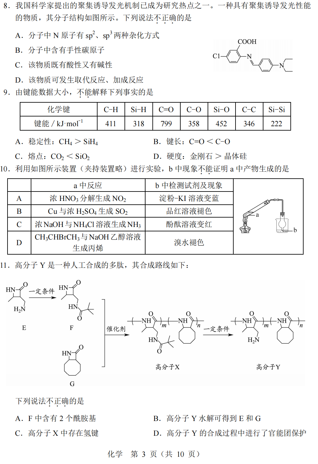 2022年高考北京卷化学试题