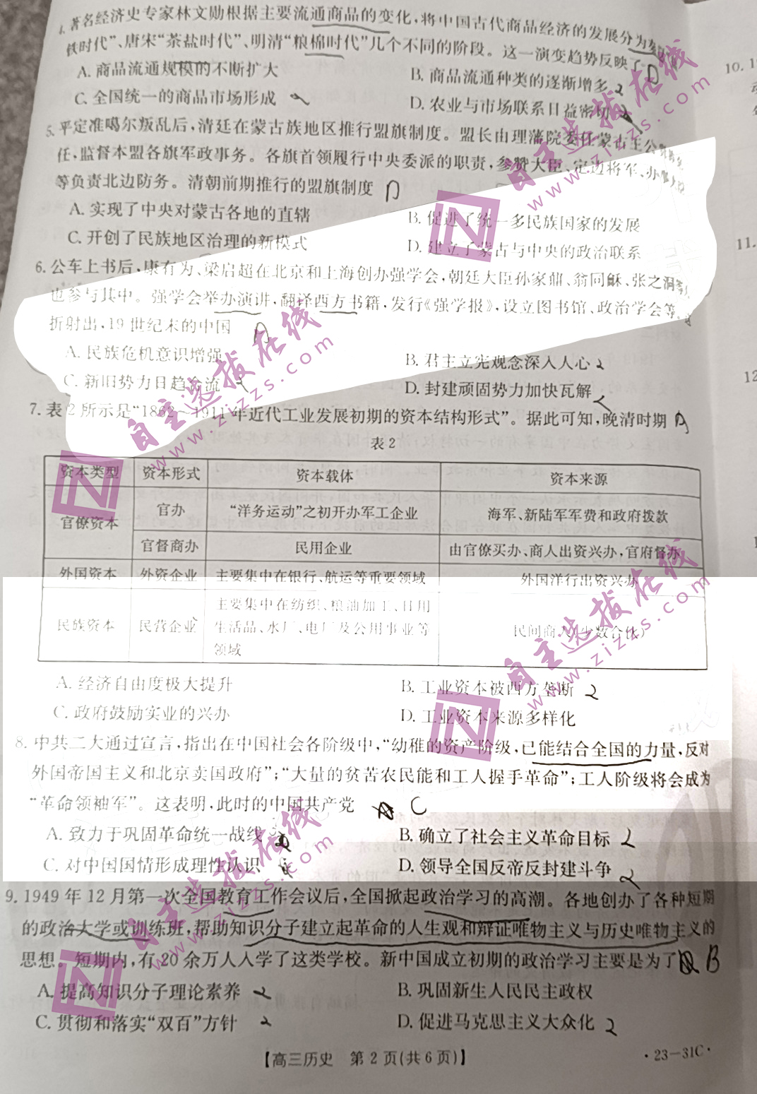 广东2023届高三9月大联考(二)历史试题及参考答案