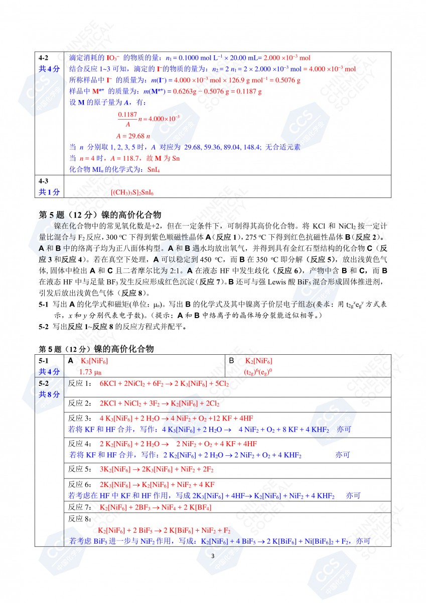2022年第36届中国化学奥林匹克(初赛)试题及答案汇总2022-10-12
