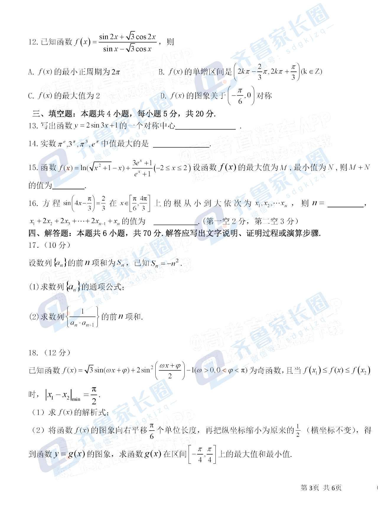 齐鲁家长圈(ID:sdgkjzq)给大家整理了2023山东历城二中高三10月联考数学试题及参考答案汇总(及时更新中),供大家下载练习。