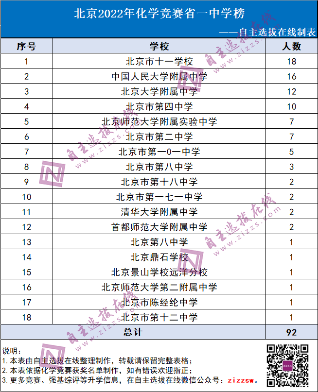 北京2022年化学竞赛一等奖中学榜