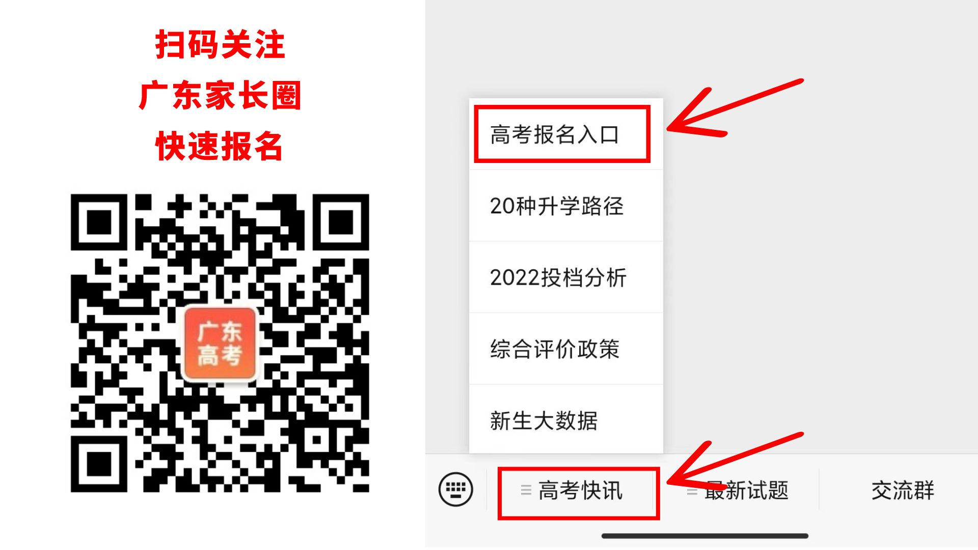 ②点击菜单栏-【高考快讯】-【高考报名入口】
