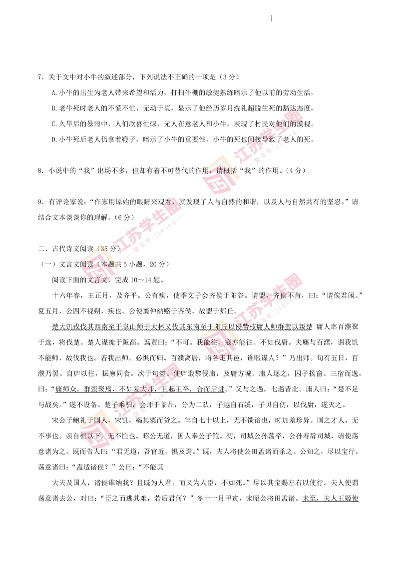 江苏苏北四市(徐州、宿迁、连云港、淮安)2023届高三上学期期中考试语文试题