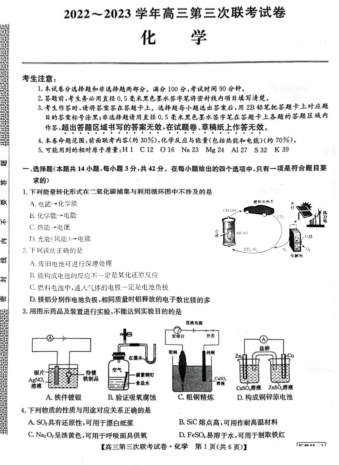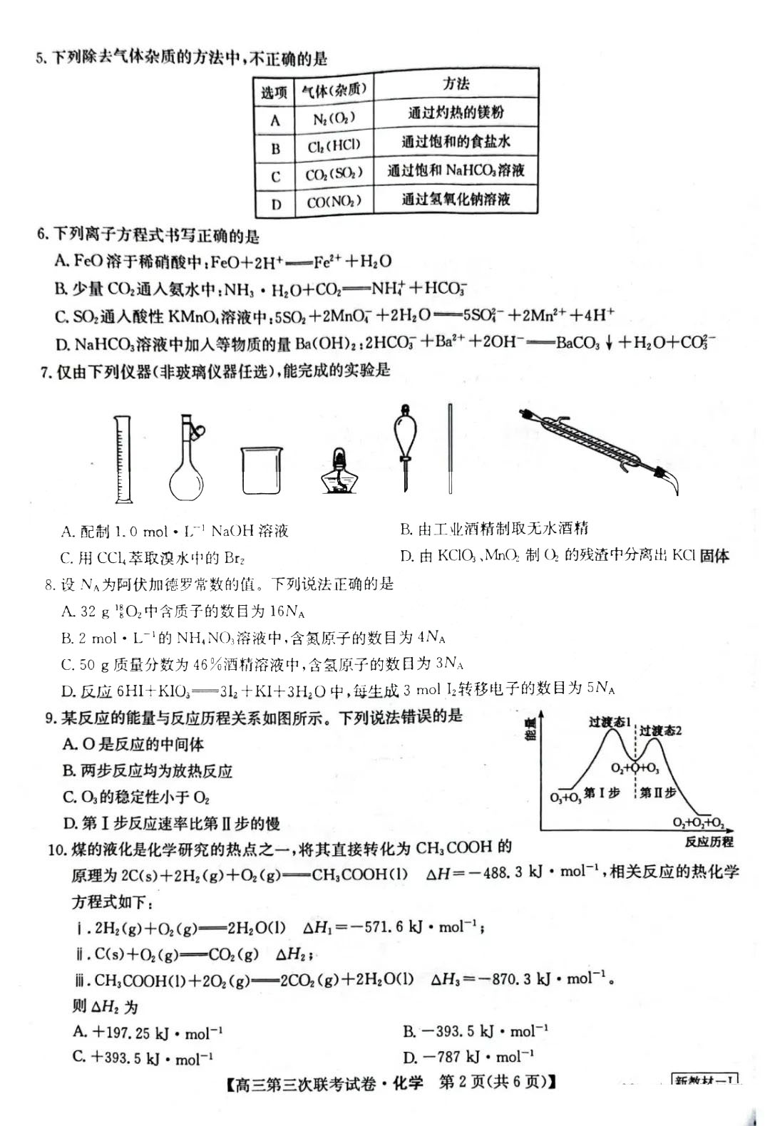 全国名校大联考2022-2023学年高三第三次联考化学试题及答案