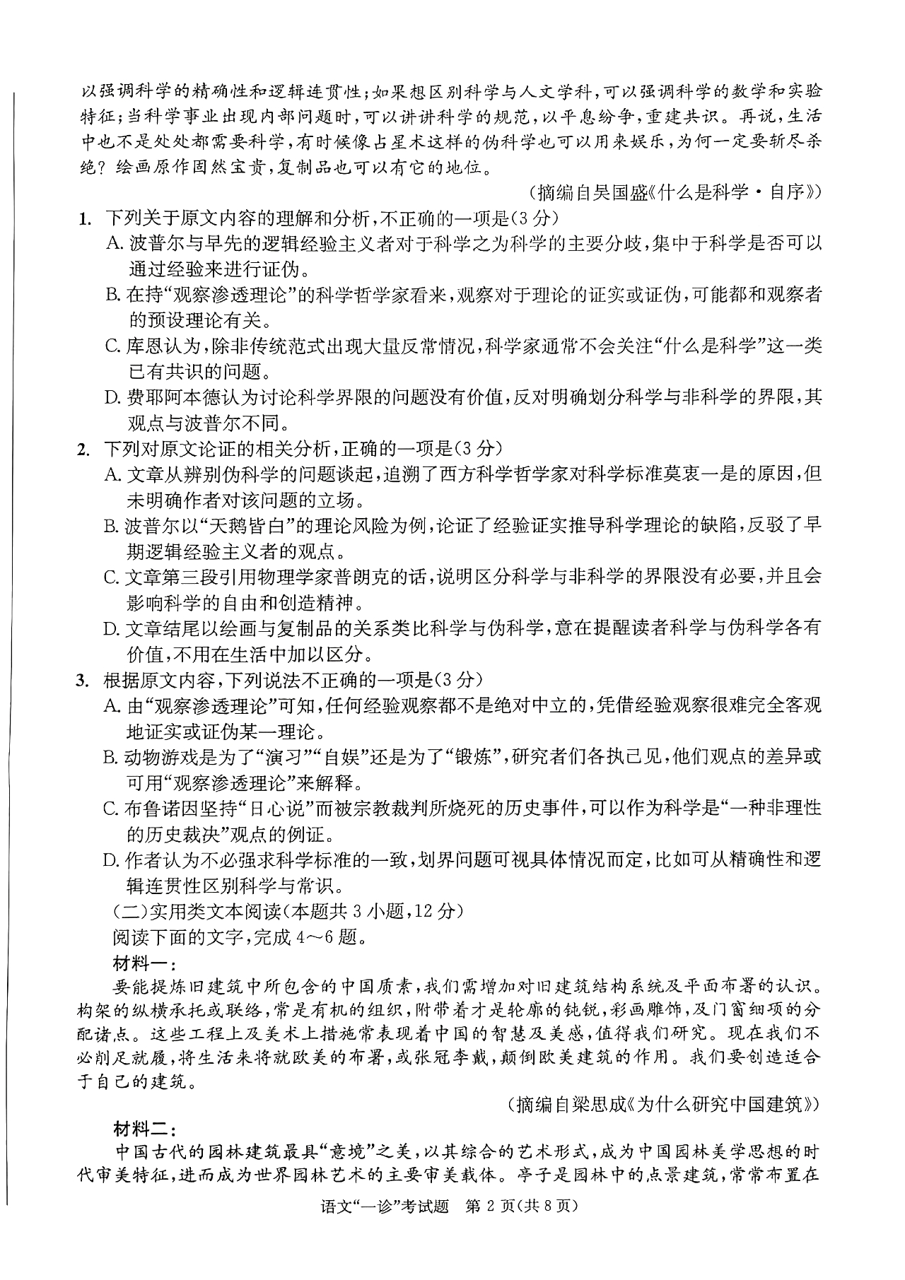 2023高三联考试题成都一诊高三模拟考