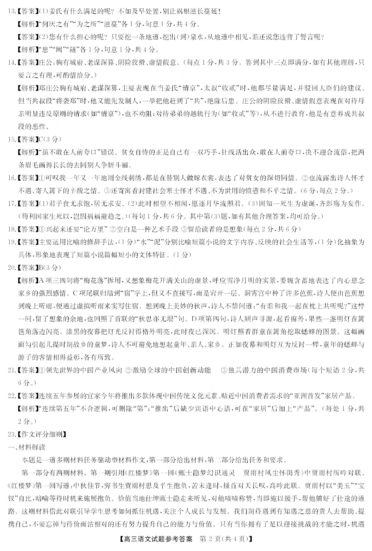 2023安徽皖北五校高三12月联考语文试题答案