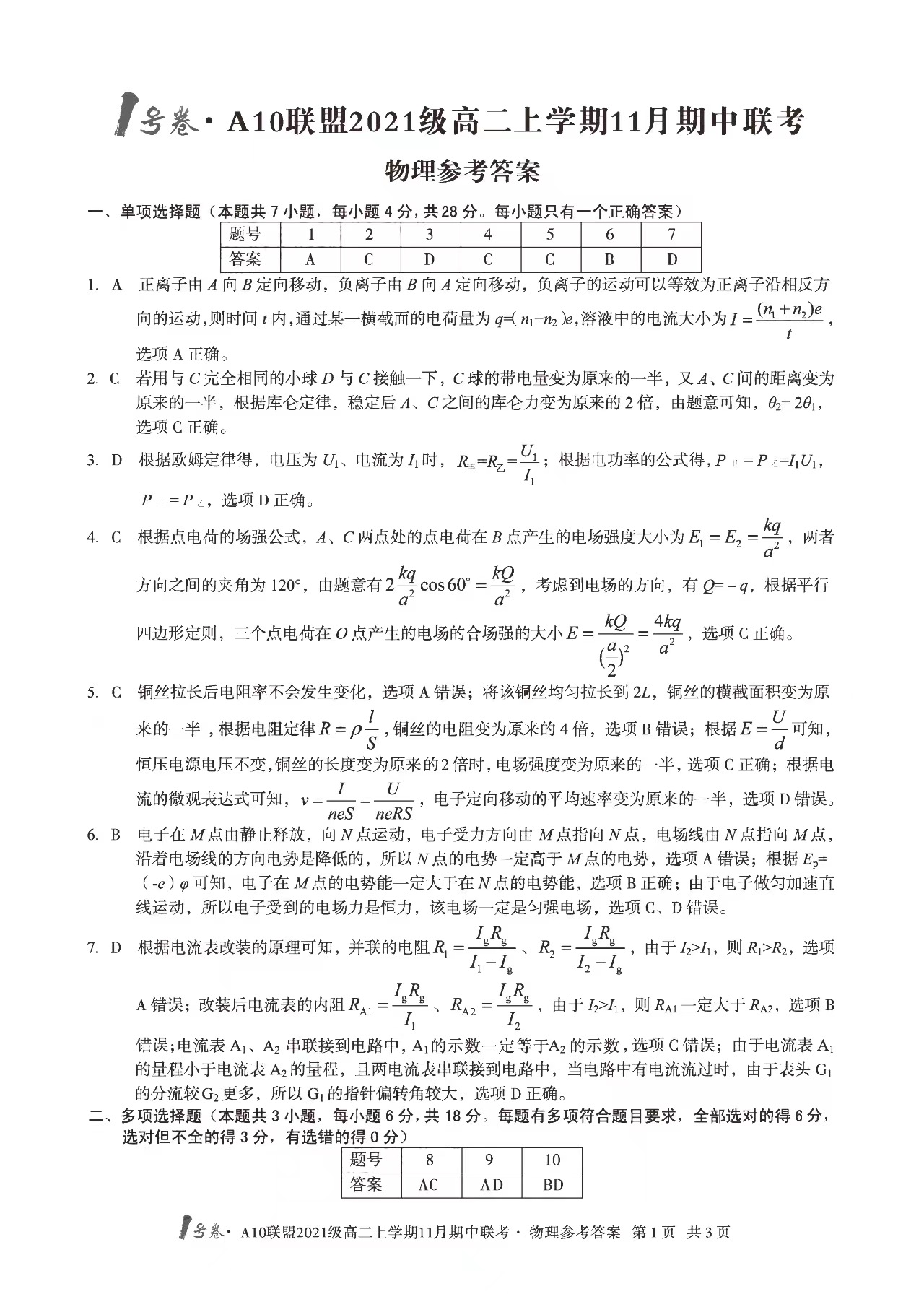 2023安徽A10联盟高二11月联考于2022年11月17日开考,为方便大家下载学习,自主选拔在线团队特整理了2023安徽A10联盟高二11月联考物理试题答案,供大家参考!
