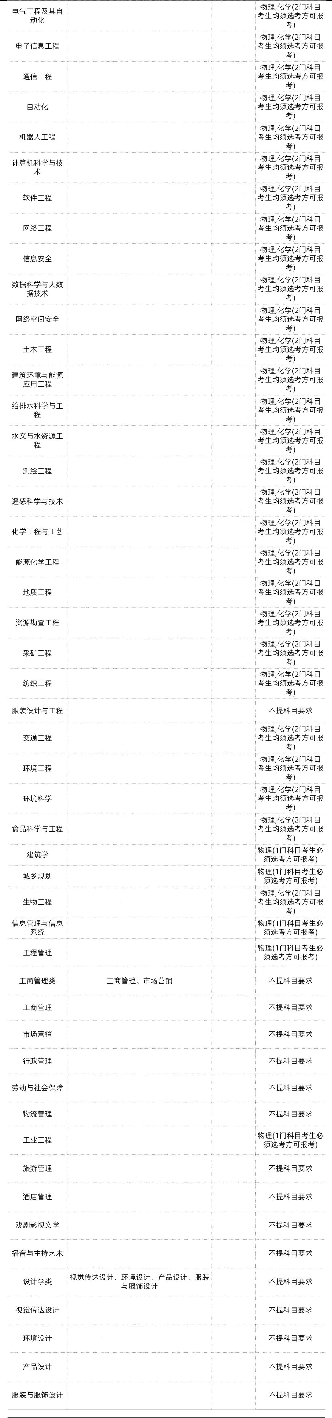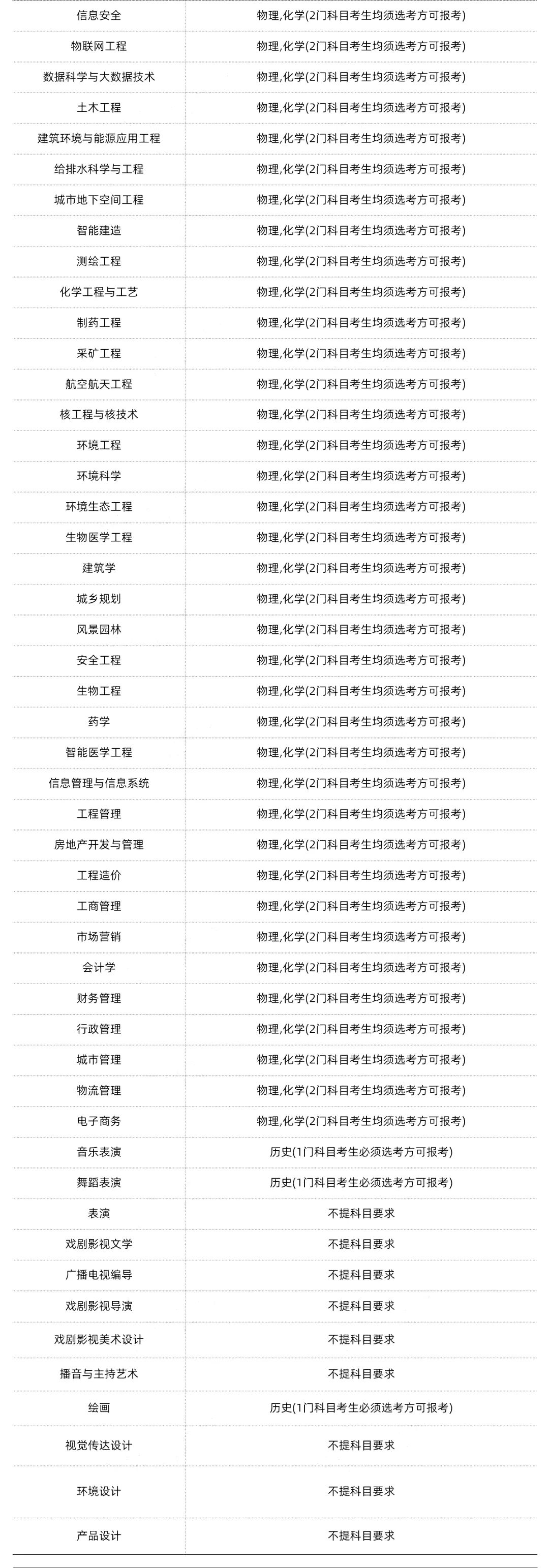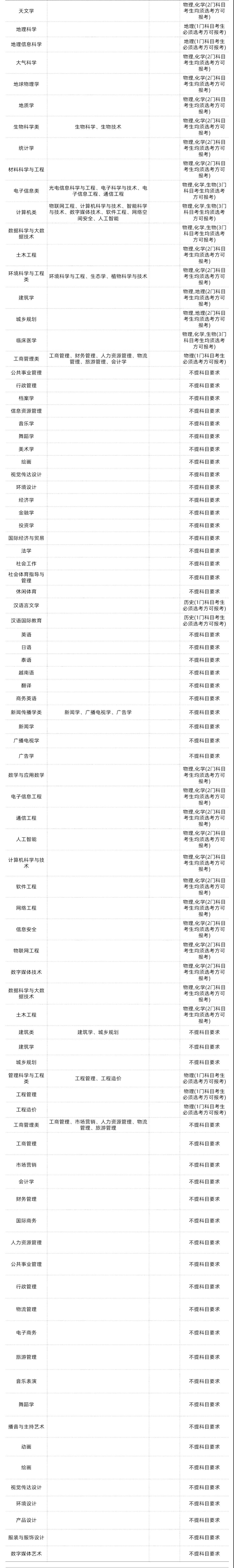 2、本《要求》中高校公布了所有跨省招生的专业及专业选考科目要求。