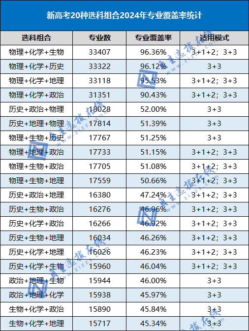 物理+化学+生物覆盖率高达96%。这个组合对考生的逻辑思维能力要求强,能选的专业多,从数据上来看,是考双一流大学的NO.1选择。而专业覆盖率95%以上的物理+化学+地理则成为最优“平替”。