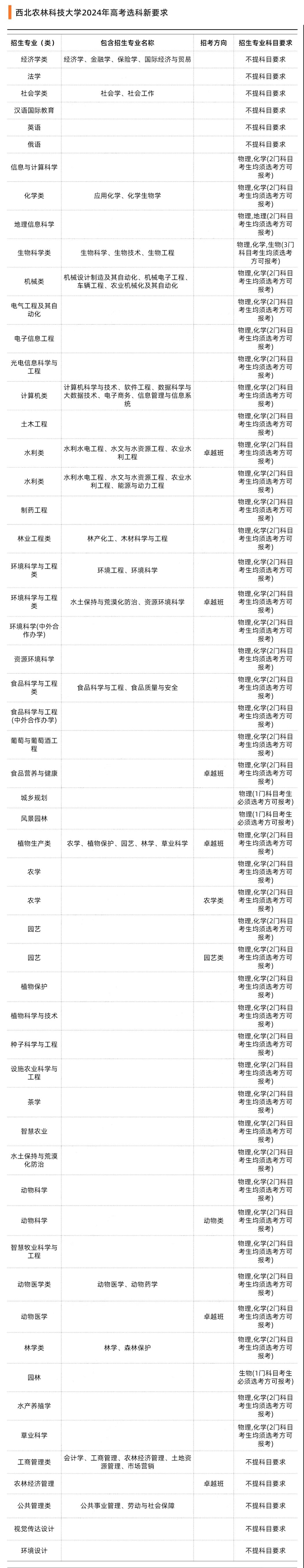 3、以下选科要求仅适用于2024及以后高考的考生。