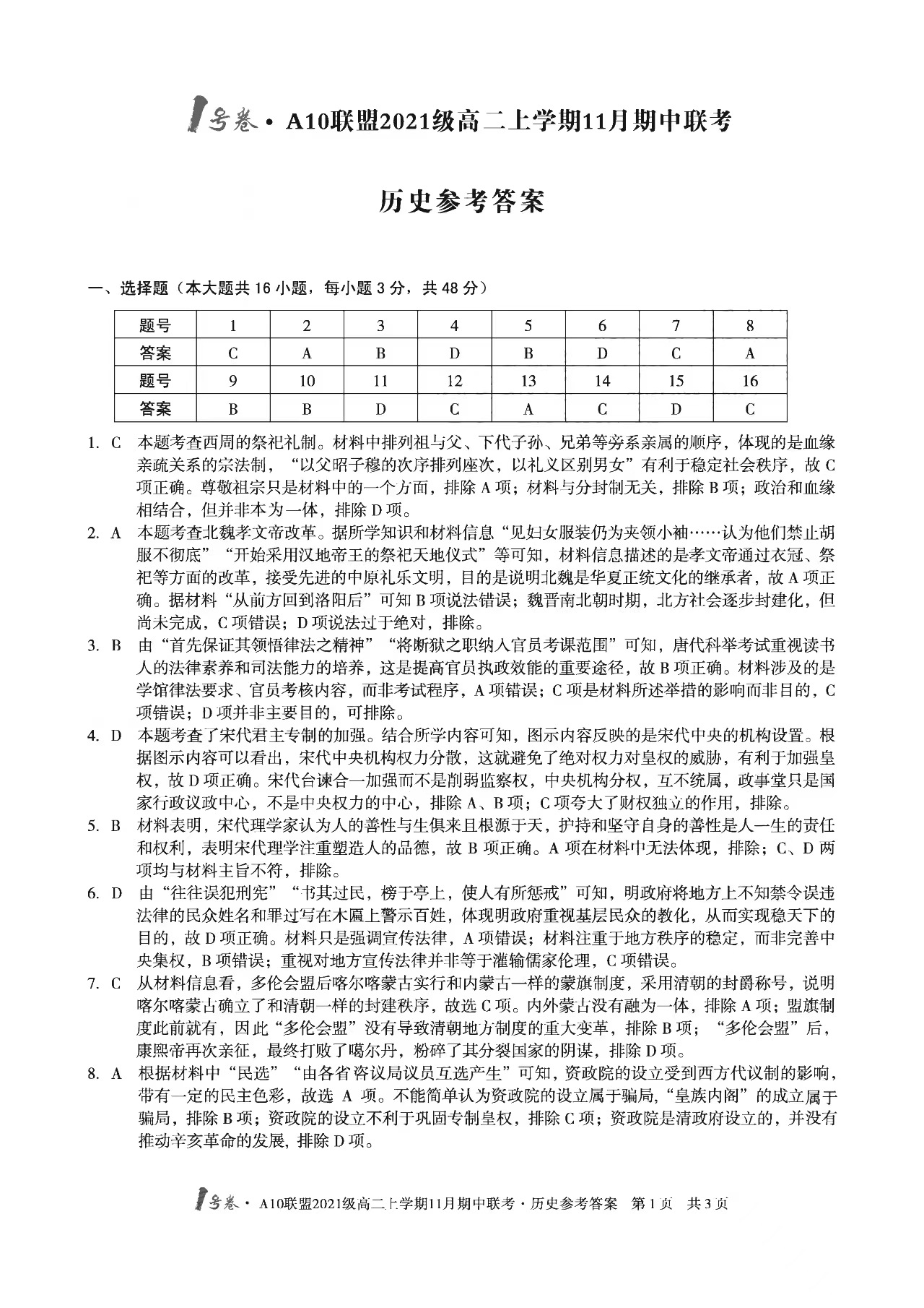 2023安徽A10联盟高二11月联考于2022年11月17日开考,为方便大家下载学习,自主选拔在线团队特整理了2023安徽A10联盟高二11月联考历史试题答案,供大家参考!