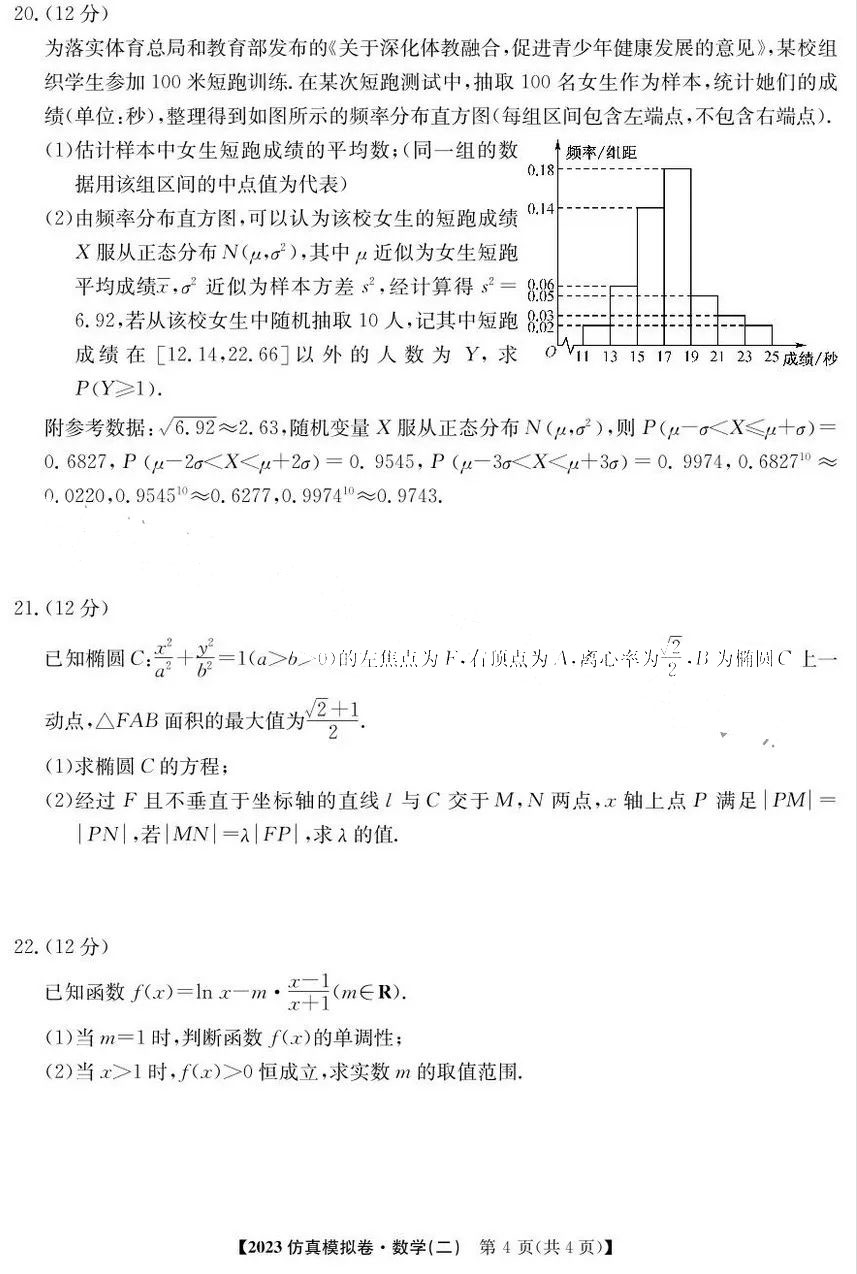 立即下载:2023普通高校招生统一考试仿真模拟卷数学(二)试题