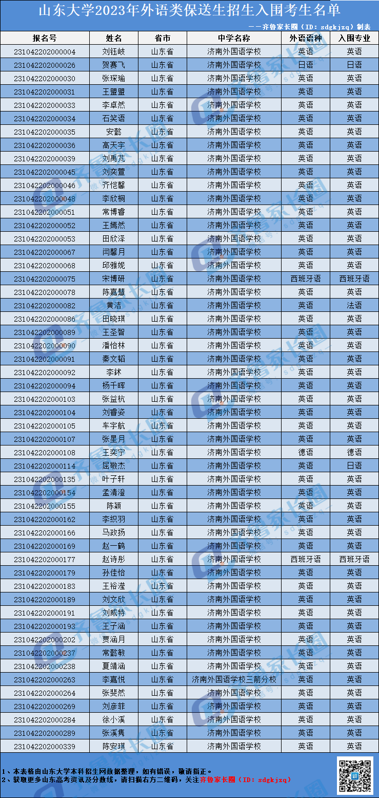 山东大学公布2023年外语类保送生招生入围考生名单,其中山东考生有53名,恭喜入围的考生们!