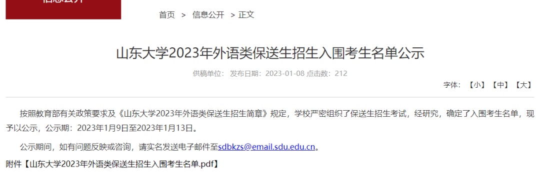 近日,山东大学公布2023年外语类保送生招生入围考生名单,此次共有172名考生入围,其中山东考生有53名,恭喜入围的考生们!一起跟小圈来看看具体名单吧~