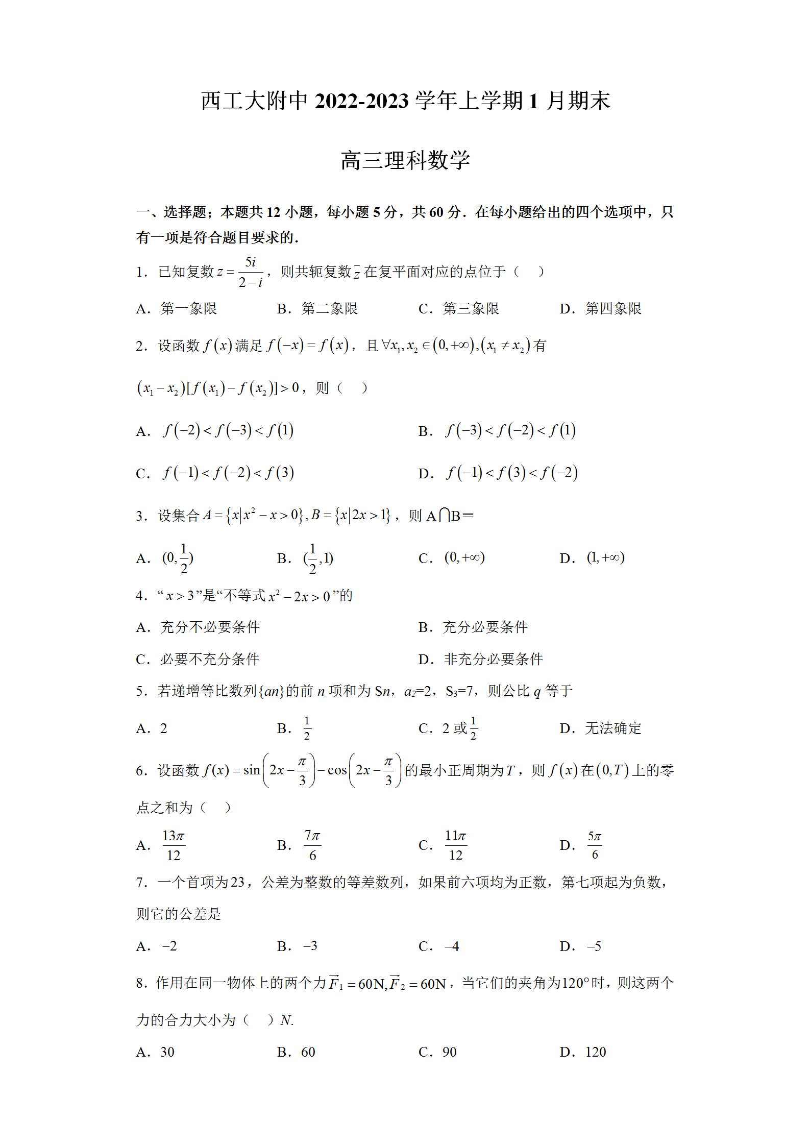 陕西省西北工业大学附属中学2023届高三上学期1月期末理科数学试题