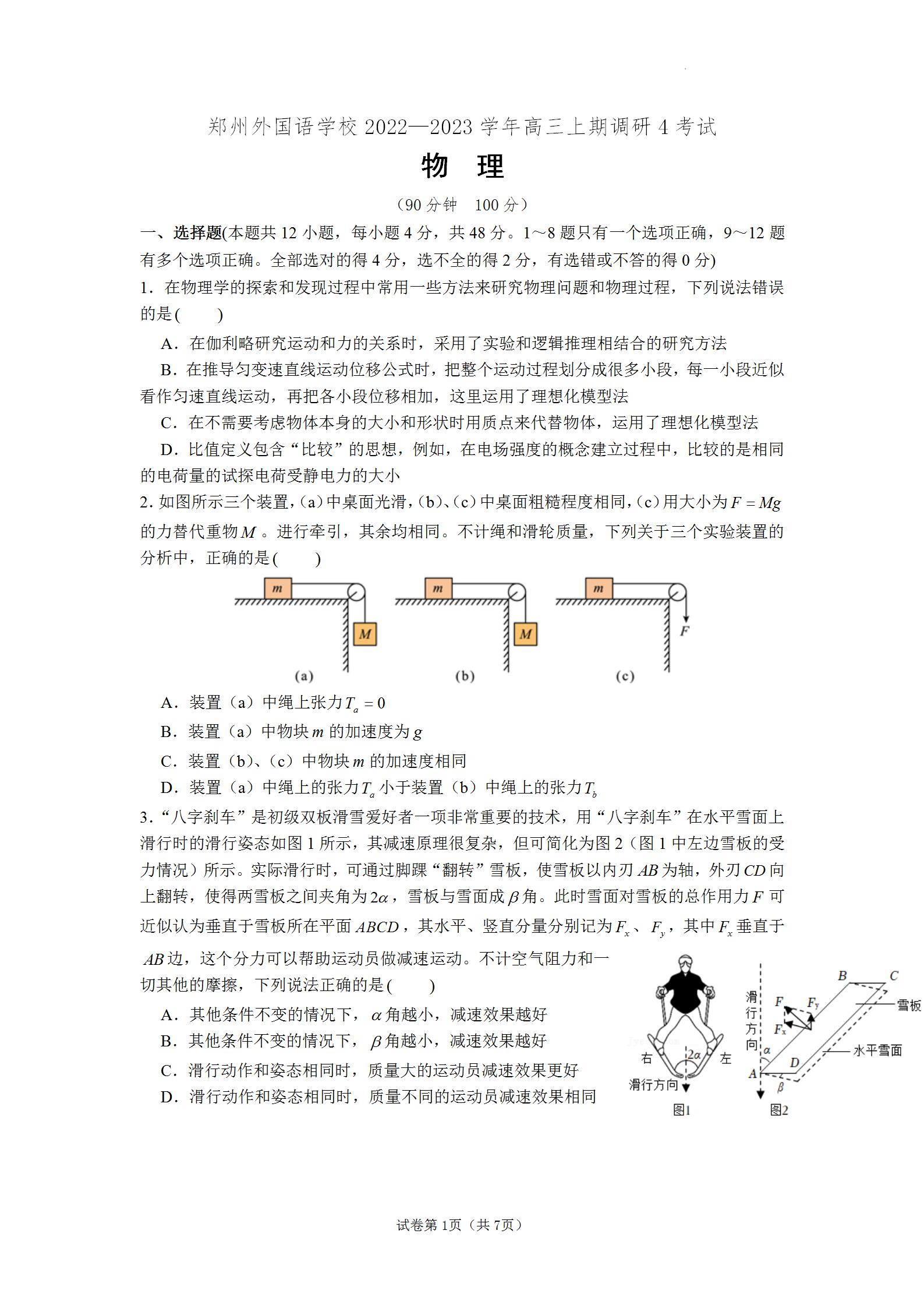 郑州外国语学校2023届高三上学期调研4试题及答案汇总2023-01-09