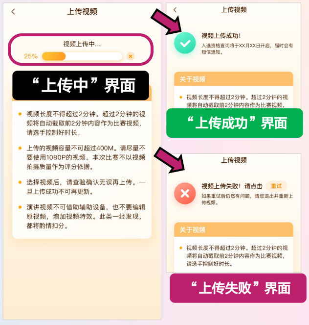 注意:一旦视频成功上传,则该视频正式成为参赛作品,不可修改。