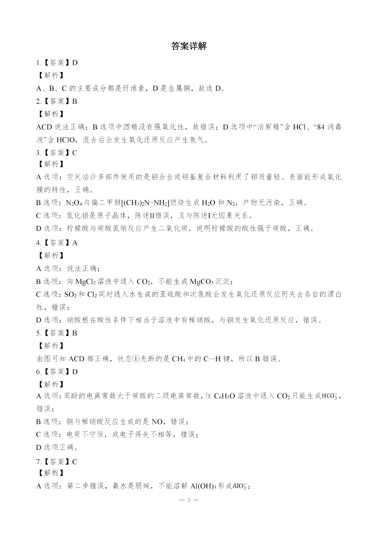 2023广东新高考学科综合素养评价高三期末化学答案