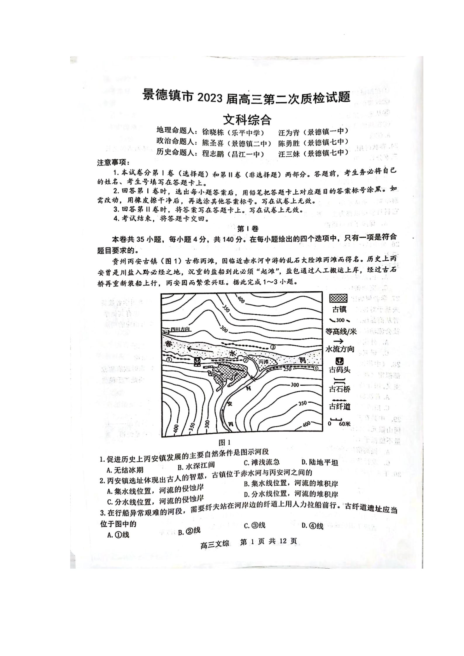 江西省景德镇市2023届高三第二次质量检测文科综合试题