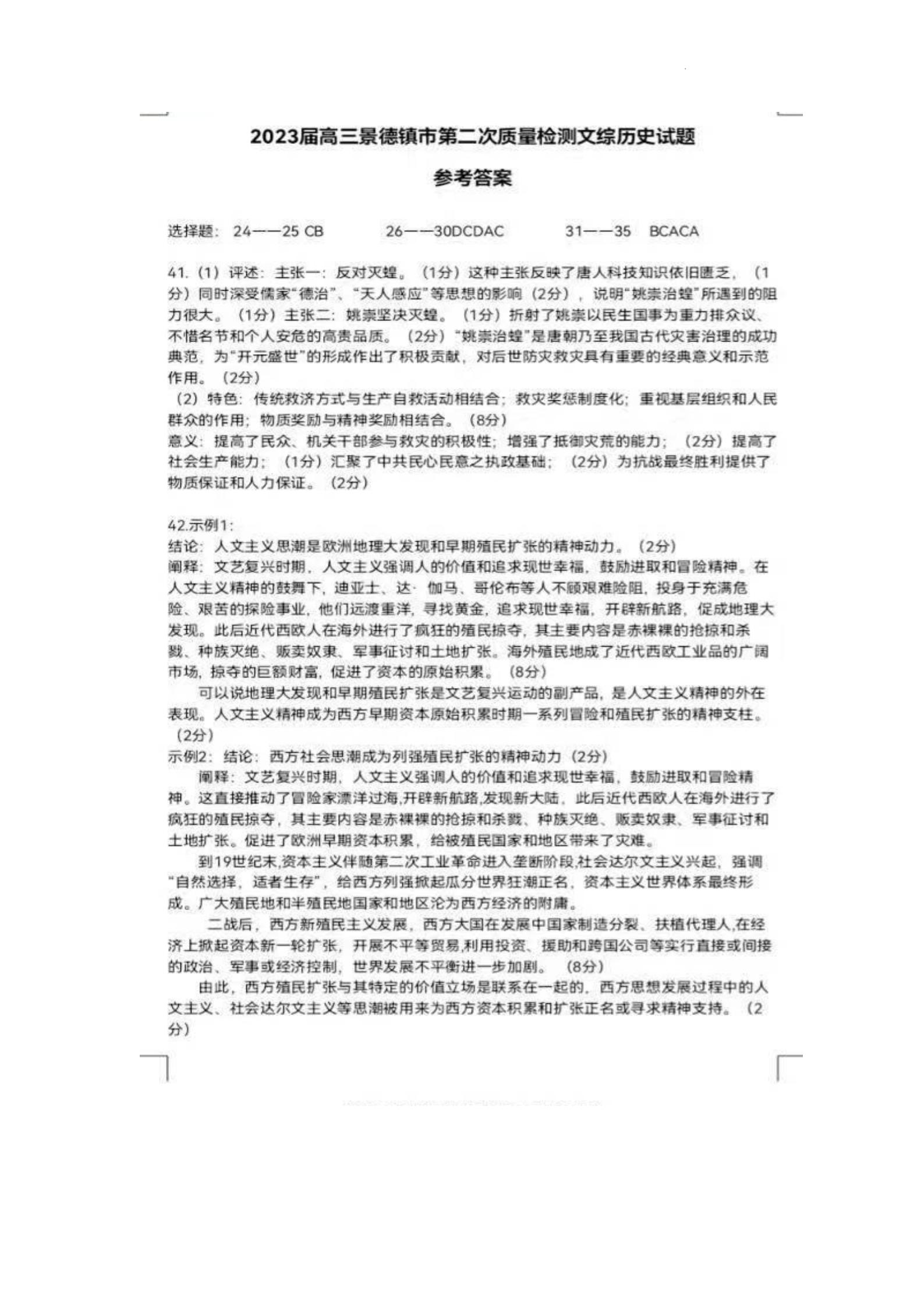 江西省景德镇市2023届高三第二次质量检测历史答案
