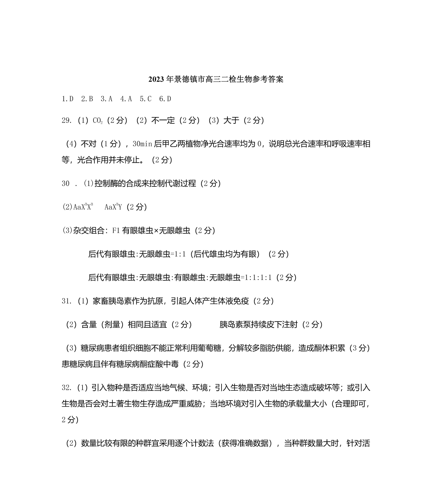 立即下载:江西省景德镇市2023届高三第二次质量检测生物答案