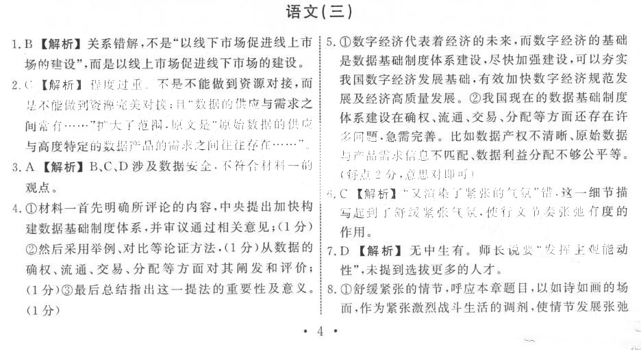 2023年普通高等学校招生全国统一考试模拟试题三语文答案