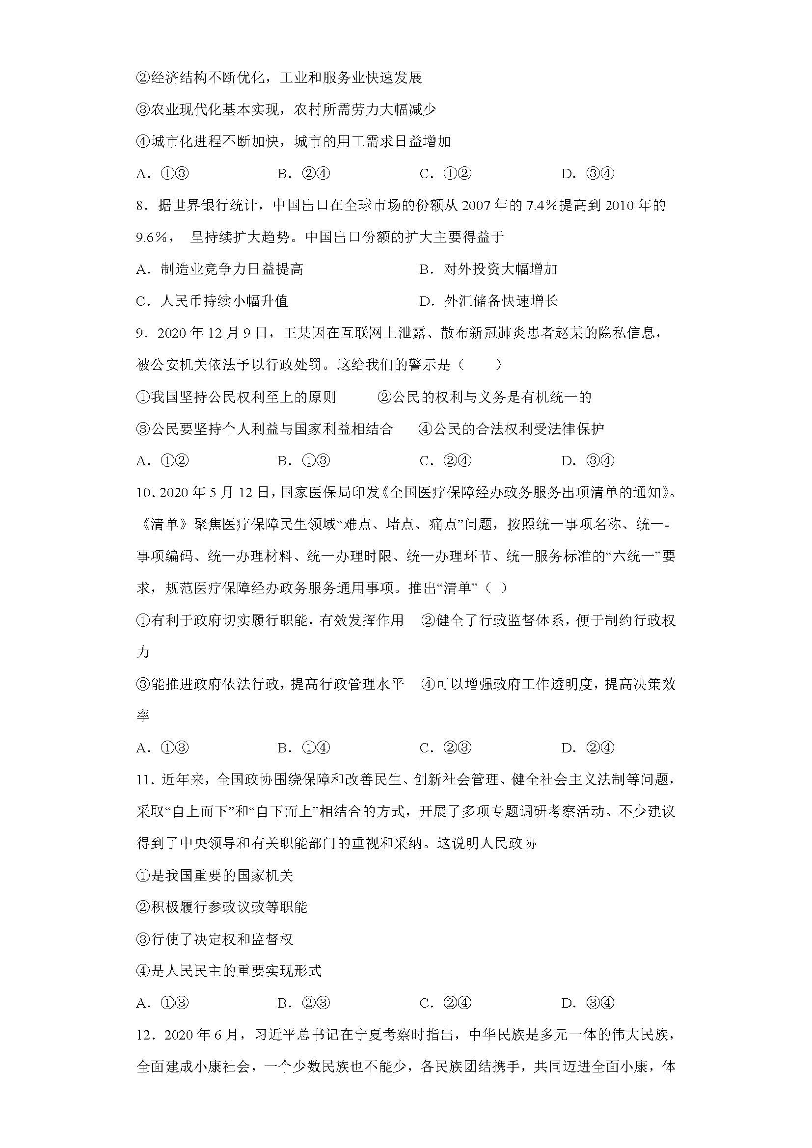 陕西省西安市铁一中学2023届高三上期末政治试题