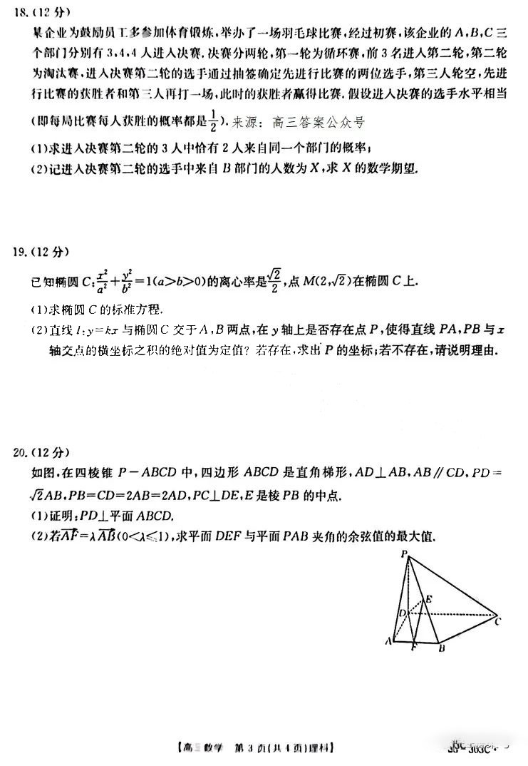 2023江西金太阳高三2月14、15联考(303C)理科数学试题