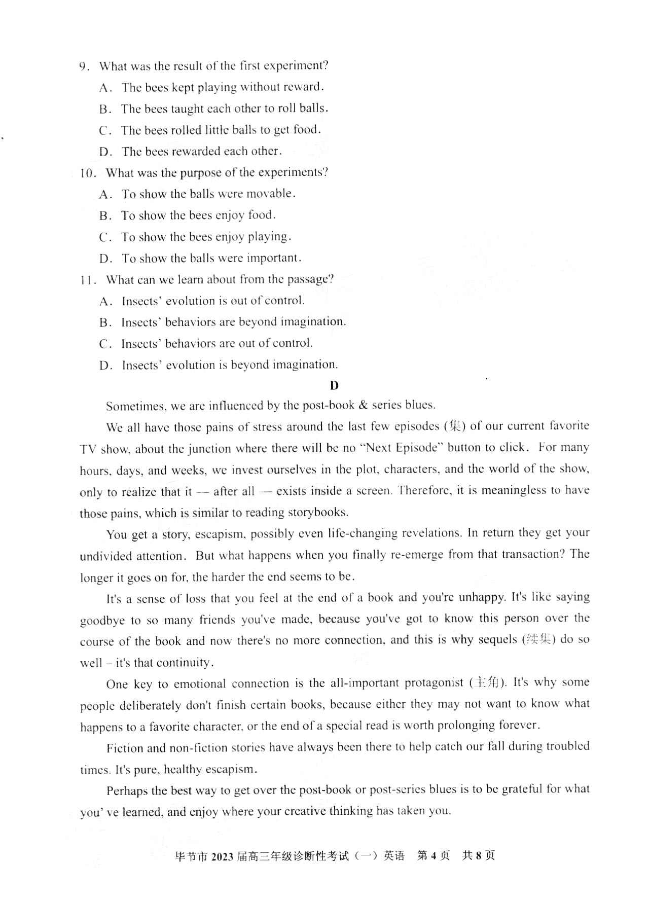 贵州市毕节市2023届高三一诊英语试题