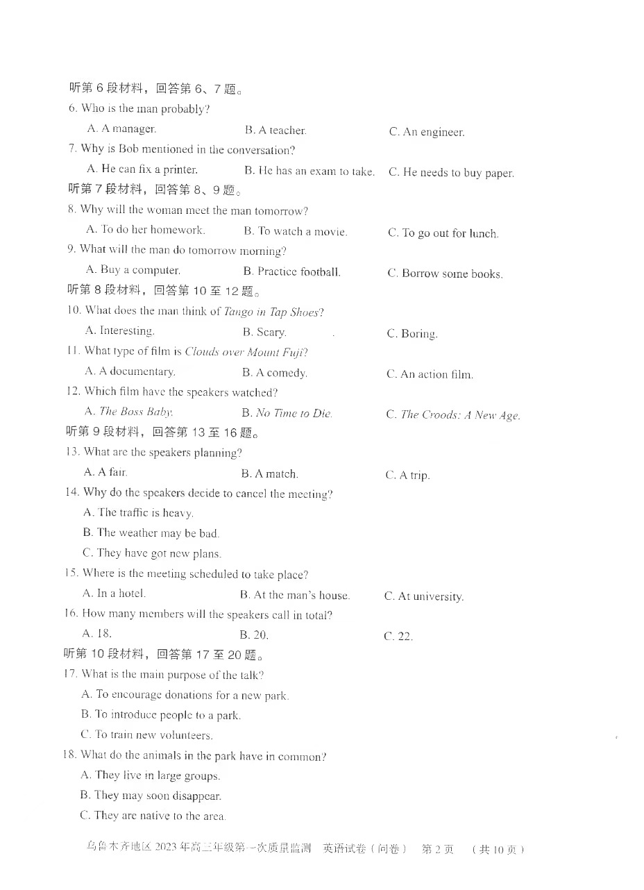 下一篇:2023新疆一模(乌鲁木齐地区)英语试题答案