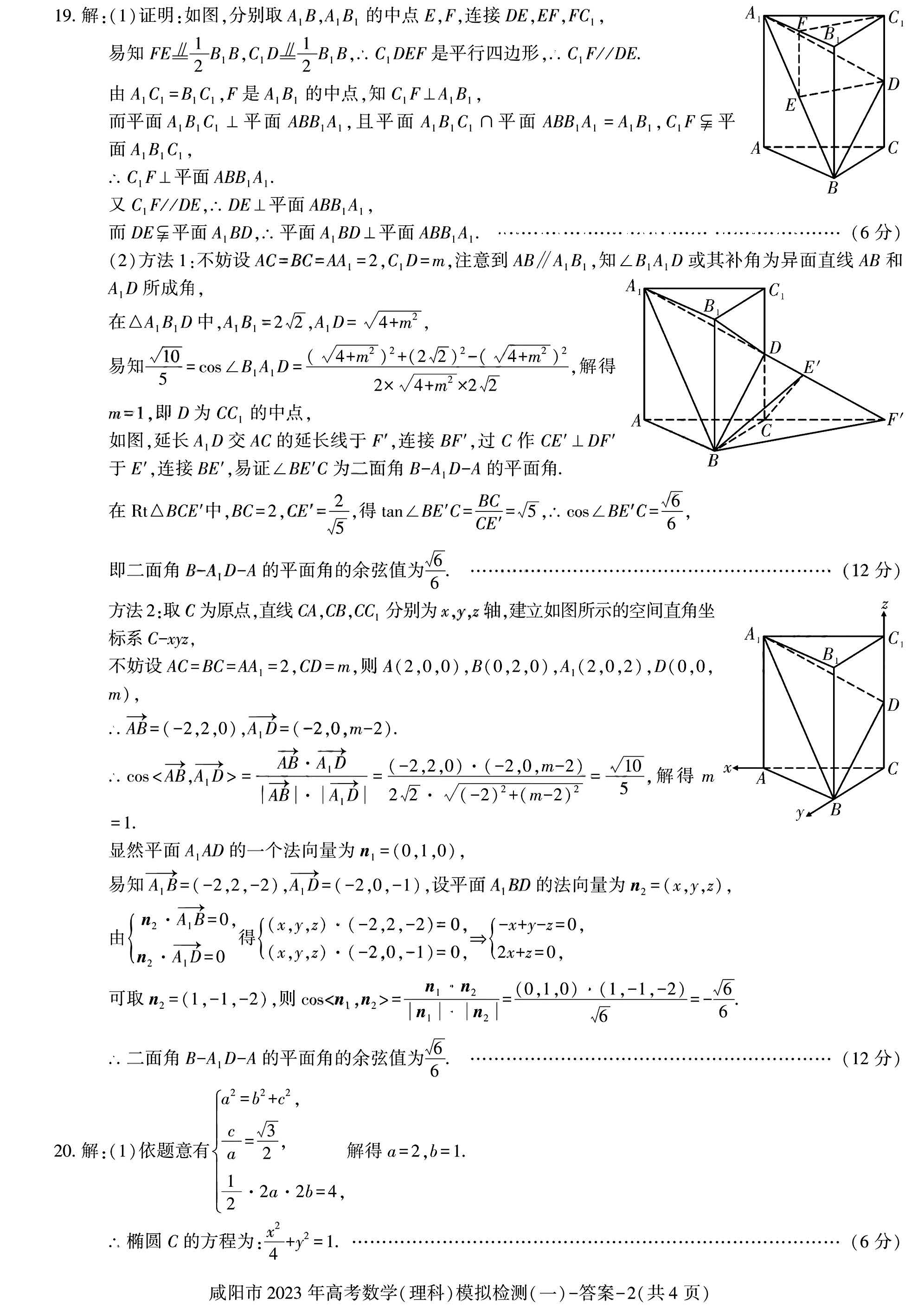 陕西省咸阳市2023届高三高考模拟检测一理科数学答案