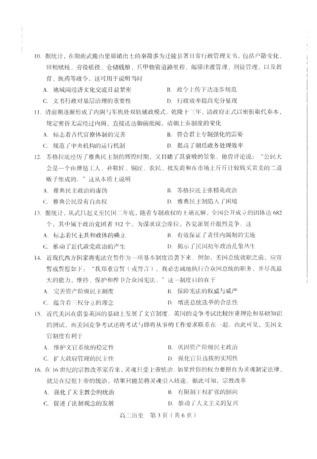 2023福建龙岩高二上学期期末考试于2023年2月13日开考,为方便大家下载学习,自主选拔在线团队特整理了2023福建龙岩高二上学期期末考试历史试题,供大家参考!