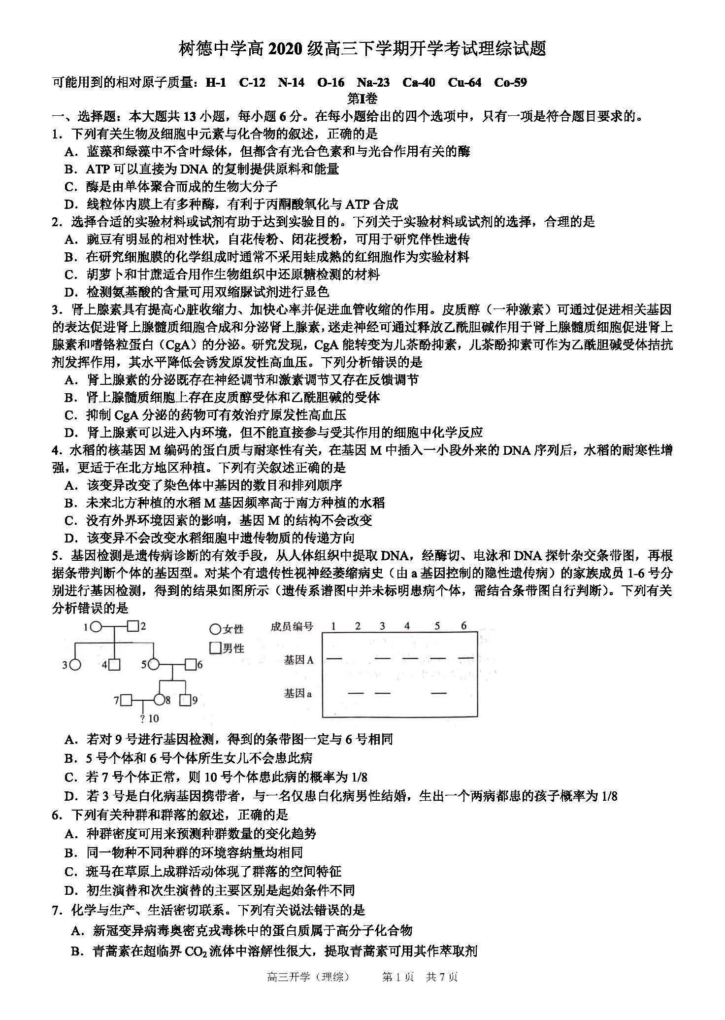 四川省成都市树德中学2023届高三下学期开学考试已于近期开考,为方便大家巩固练习,自主选拔在线团队同步整理相关试题,供大家下载。