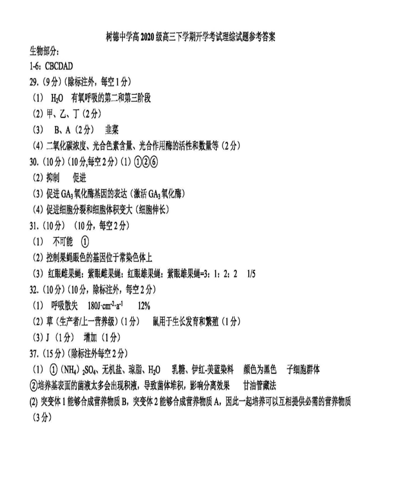 立即下载:四川省成都市树德中学2023届高三下学期开学考试生物答案