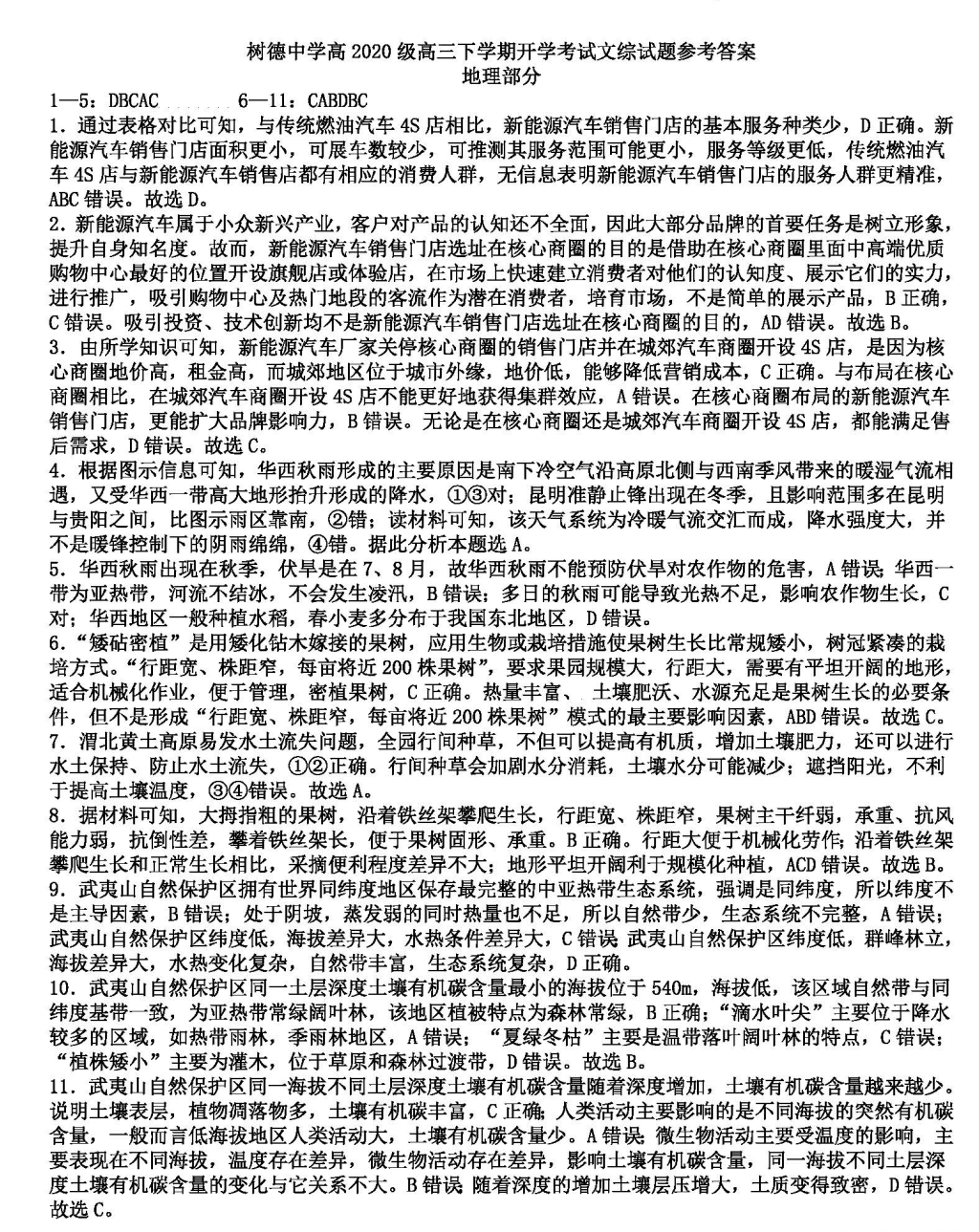 四川省成都市树德中学2023届高三下学期开学考试地理答案