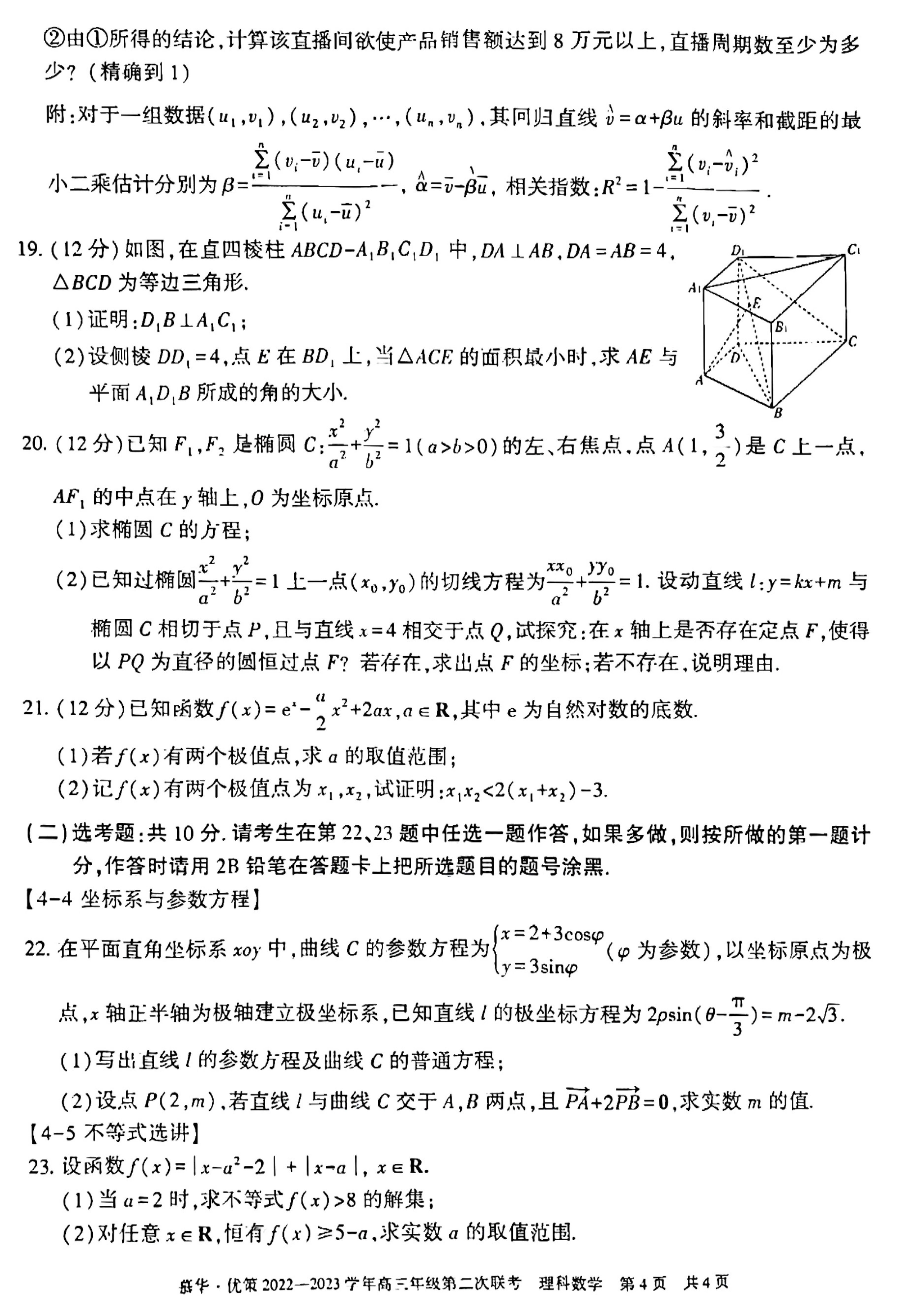 立即下载:新疆慕华优策2023届高三年级第二次联考理科数学试题