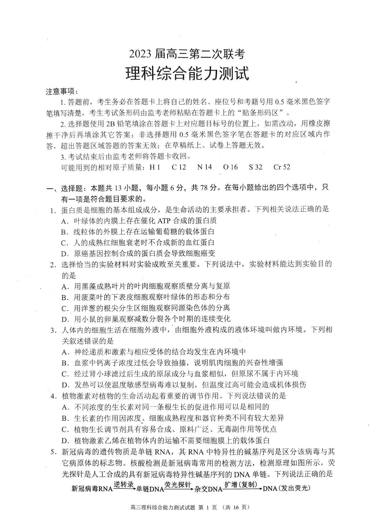 2023蓉城名校联盟高三第二次联考于2月22日正式开考,为方便大家巩固练习,自主选拔在线团队特此汇总整理了2023蓉城名校联盟高三第二次联考理综试题,供大家下载。