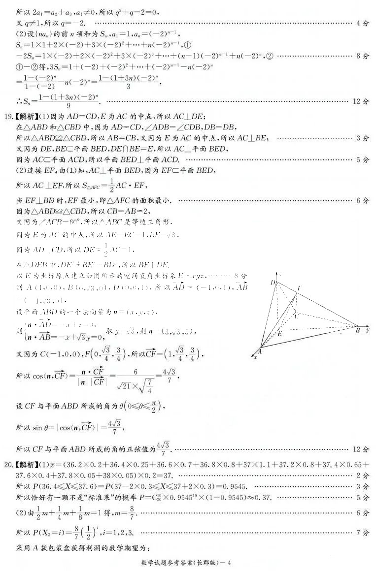 长郡中学2023届高三月考七数学答案
