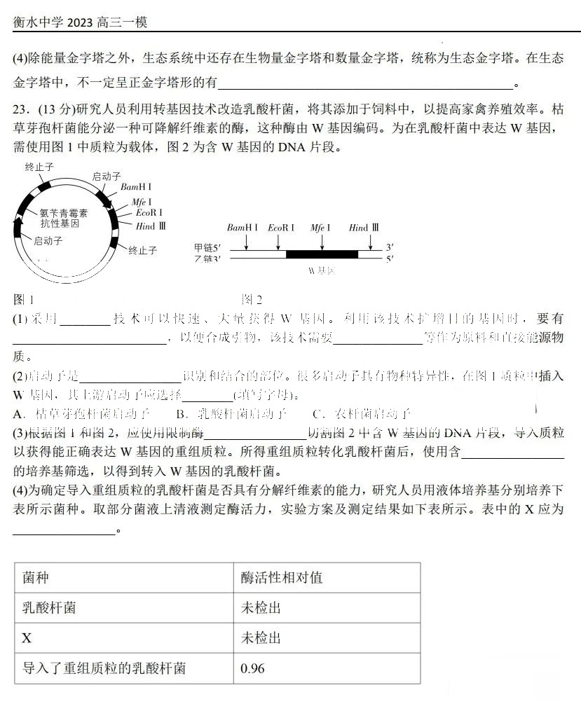 立即下载:衡水中学2023届高三第一次模拟考试生物试题