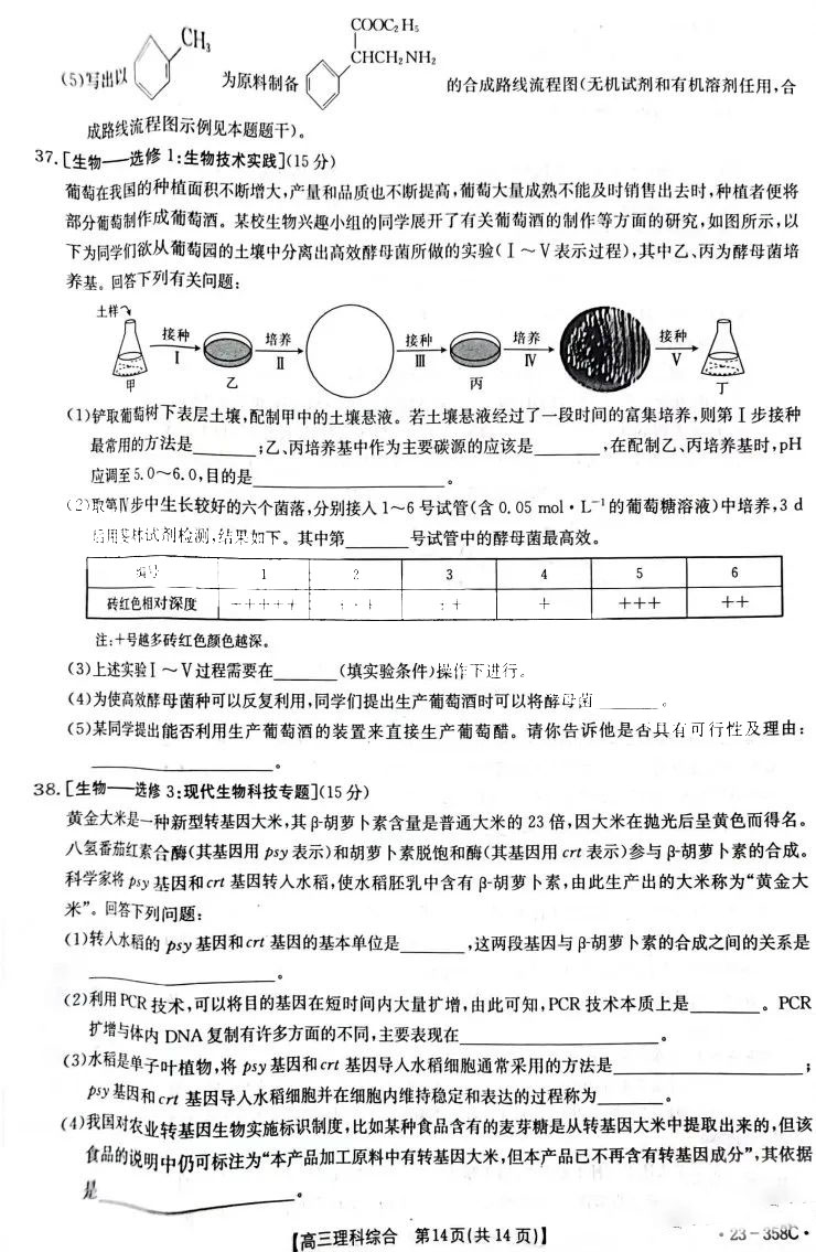 立即下载:2023金太阳高三3月9、10日联考(358C)理综试题