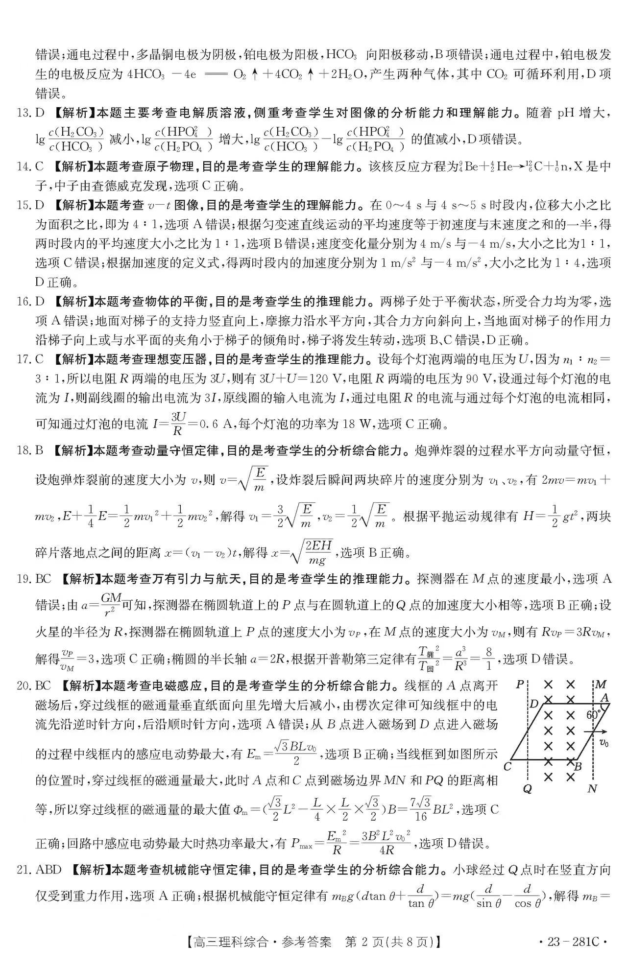 广西梧州市2023年3月高三模拟考试(梧州二模)理综试题答案