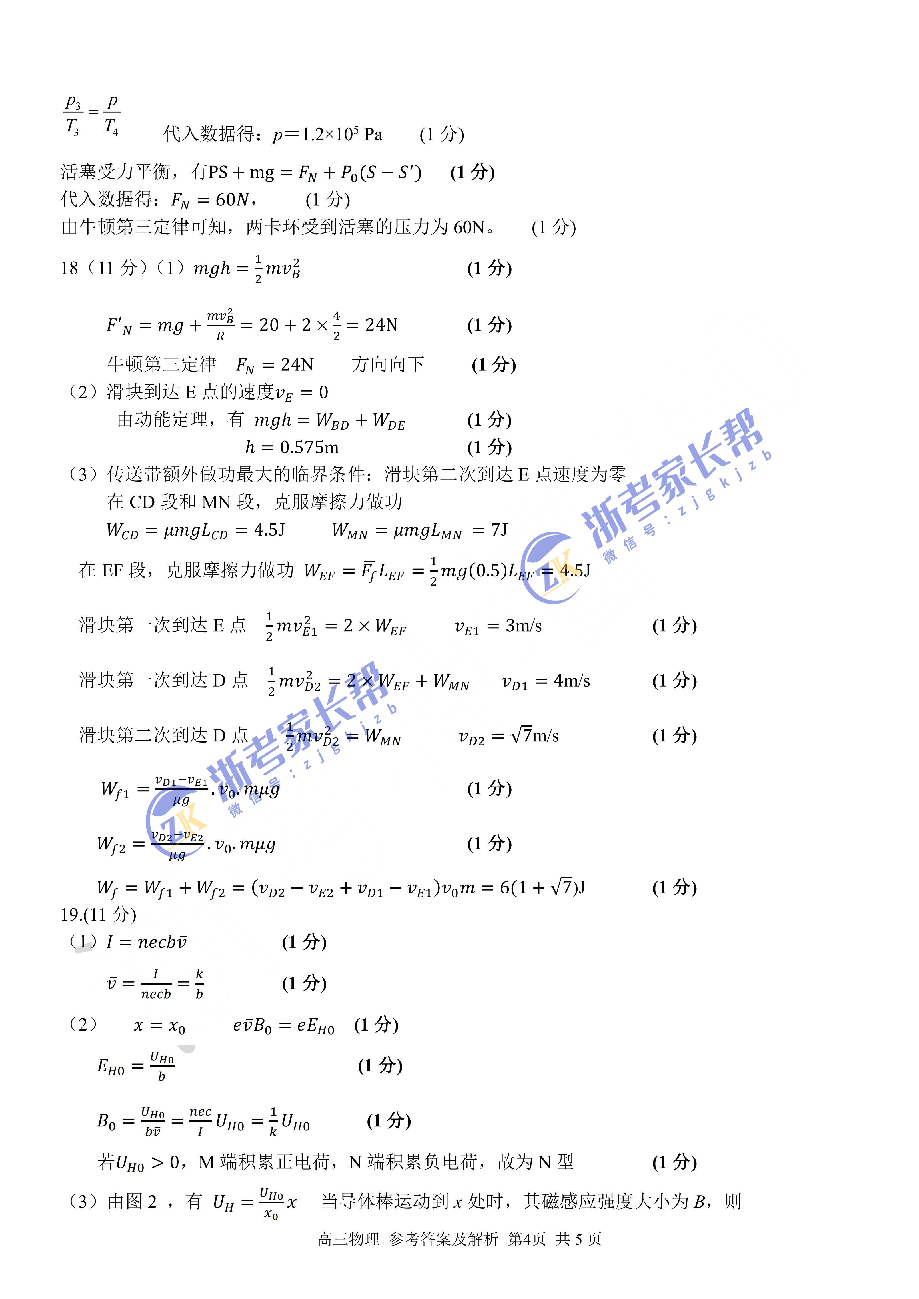 2023届浙江省金丽衢十二校高三3月联考物理答案